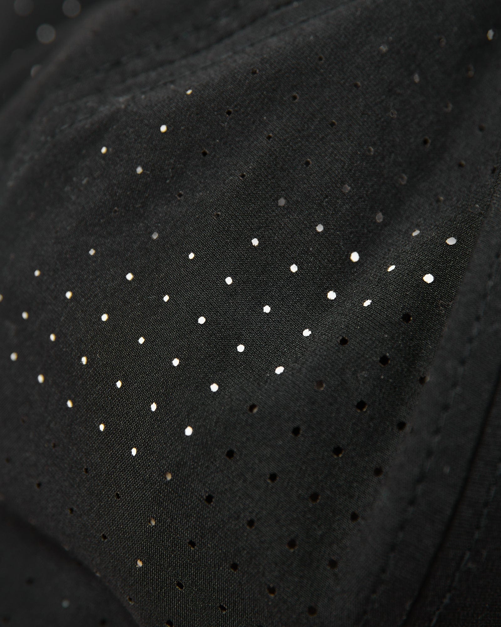 Built for performance with quick drying fabric and perforated side panels for maximum breathability. Running a classic deep fit with snapback closure and a curved brim, the Black Perform Vented Cap brings a familiar street style back to life with a new performance edge.